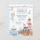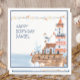 Uma ilustração aquosa de um farol, veleiro, gaivotas e uma baleia. Perfeito para uma festa de aniversário temática náutica.
