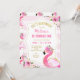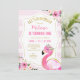 Flamingo Flamingle Flamingo Birthday Invitation Flamingo, Vamos rosa, com convite de aniversário com flamingo rosa, alguns arranjos florais, quadro branco e fundo listrado rosa. Este convite de aniversário inflamável para vamos também apresenta um título de ouro falso que é parte da imagem.