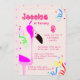 Convite de aniversário para ilustração de arte moderna, cor-de-rosa-magra Minimalista, para crianças de 0 a 10, personalize ainda mais, se preferir. blackglitterdesign@gmail.com