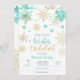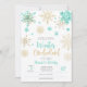 Inverno de uma terra brilhante, flocos de neve, convite de aniversário de um ano, bebê. Pastel e super fofo. Nome editável, endereço.