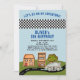 Carro correndo em uma estrada com o Convite de Aniversário do Houses Boy. Vamos vai numa aventura! Junte-se a nós para uma festa de aniversário inesquecível com um tema de corrida de carros - carro simples com seu número de idade em uma estrada com casas e árvores. Seu pequeno piloto vai pegar o volante e dirigir pela rua. Prepare-se para um dia cheio de jogos e guloseimas! Adicione suas informações de aniversário e o número de idade no carro.
