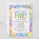 Os balões galeram em aquarelas azuis, laranja, amarelas e verdes com os detalhes da festa em negrito e moderno.O convite pode ser facilmente personalizado para o seu evento adicionando os detalhes do seu evento, estilo de fonte, tamanho de fonte e cor e texto de sua escolha clicando no botão 'Personalizar'.