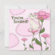 Gato de Gatinho Branco e Convite de aniversário de Flores Rosa para Meninas.