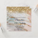 Um convite de 50 anos para ela. Mude o evento para qualquer celebração de aniversário de um ano ou marco. Falsa brilho dourado esparso contra uma imagem gráfica de arte digital marmoreada opal dourada falsa. O texto pode ser personalizado. Todo o brilho e ouro neste design feminino moderno são criados com gráficos impressos de arte digital.