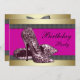 Bonito calçados de salto alto rosa-quente e convite de aniversário-leopardo rosa-quente. Este convite de festas-leopardo rosa-quente funciona bem para uma festa de solteira, chá de panela, mulheres 21ruas, 25, 30, 35º, 40º, 45º, 50º, 55º, 60º, 65º e qualquer outro número de anos. Este convite de aniversário-na moda cor-de-rosa-quente-leopardo funcionaria bem como um doce convite para dezesseis convites de aniversário ou Quinceanera e é facilmente personalizado para o seu evento, simplesmente escolhendo o botão "Personalizar!" para começar a adicionar os detalhes do seu evento, estilo da fonte, tamanho da fonte e cor e texto. Por favor, observe - todos os topos de bolo, cartas e designs de convite que você encontrará no Zazzle são gráficos impressos sem joias reais, arcos, levantados, gravados ou adicionados de peças ou peças.