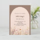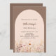 Um convite elegante para flores silvestres. Um Mocha, um fundo castanho mudo e um arco cor bege. Decorado com flores silvestres de cor d'água em bege, rosa.