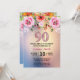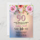 Convite de Aniversário para 90 moderno. Design de elementos de fundo azul, cor-de-rosa cintilante com brilho e elementos florais. Clique em personalizar mais para editar fonte/ cor/ estilo etc.