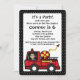 Red Fire Truck acentuou-se em bolinhas pretas e brancas e um lugar para a foto do seu filho no lugar do motorista. Personalize o texto e a foto para a próxima festa do seu filho.