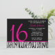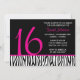 Um doce cor-de-rosa e preto bonito super da zebra convite de 16 aniversários. Personalize facilmente com sua informação do partido.