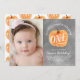 Um convite à moda doce do aniversário que caracteriza sua foto com um tema do outono e um fundo pintado mão da abóbora e do quadro. Lê "nossa abóbora pequena está girando um"