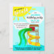 Faça um salto com o nosso Vamos vibrante Faça um Convite para o Aniversário do Parque da Água! Perfeito para uma comemoração de aniversário de verão, este design apresenta dois slides coloridos contra um céu ensolarado brilhante, garantindo que os detalhes de sua festa sejam incorporados sem interrupções ao design divertido e festivo. Convide seus convidados para um dia de entusiasmo e riso com este convite atraente e brincalhão.