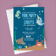 Mergulhe em uma celebração mágica com nosso Convite de Aniversário do Partido da Piscina dos Animais do Mar Submarino, apresentando um vibrante pano de fundo azul-escuro enfeitado com adoráveis criaturas marinhas como um charmoso narval, cavalo de mar lúdico, caranguejo alegre e arraia graciosa, tudo nadando em meio a ondas sombrias. Perfeito por dar o tom para uma emocionante aventura aquática, este encantador convite captura a maravilha do mar profundo e convida amigos e família a juntarem-se à inesquecível festa de aniversário da vossa pequena.
