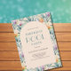 Convite de aniversário de piscinas tropical. Fácil de mudar o texto. Bonito aquarela floral para o verão.