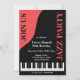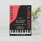 Comemore a ocasião com um tema do jazz; caracterizando uma silhueta do violoncelo e do piano no fundo vermelho e preto coral.