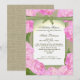 As bonito drangeas cor-de-rosa sobre burlap criam um trabalho de quadro para este convite de festas elegante de jardim. Personalizar texto para qualquer ocasião.