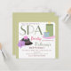 Um convite de festas spa com ilustração de pedras com orquídeas à esquerda e velas à direita. Fundo verde claro. Personalize o texto com detalhes da sua ocasião.
