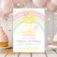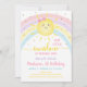 Este adorável design apresenta um sol com um arco-íris colorido pastel e um confete de brilho dourado sujo.