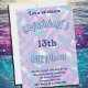 Faça um depoimento com este convite de aniversário púrpura de pastel que chama atenção. O design apresenta uma mistura cativante de matizes roxos e um efeito brilhante deslumbrante, criando uma sensação verdadeiramente mágica e memorável. Este convite é ideal para uma festa de aniversário e é totalmente personalizável, permitindo que você adicione todos os detalhes do evento para um toque verdadeiramente personalizado. Prepare-se para uma celebração que brilha!