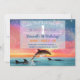 Convite de aniversário de moça náutica ou de menino apresentando um belo golfinho nadando no oceano sob um céu estrelado mágico, saltando para alegria em comemoração do aniversário de sua pequena estrela. A legenda diz "Estrela Pequena Brilhante", seguida dos detalhes da sua festa de aniversário. Você pode escolher uma cor de fundo azul ou rosa. O lado inverso é um gradiente pastel de aquarela encantador com espirais de estrelas de faísca. Você pode personalizar facilmente os detalhes (como nome, idade, data) clicando em "personalizar" e digitando o texto desejado para substituir o texto de amostra nos campos indicados. Perfeito para festas temáticas náuticas, tropicais, praias e oceânicas.