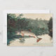 Adicione um pouco de arte de pesca aos seus convites de aniversário. Esta é uma reprodução de uma trabalho de arte de aquarela Homer mostrando uma truta manchada pulando da água.