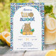 Celebre o segundo aniversário do seu docinho com este convite de festas de limonada inspirado em Itália, concebido para diversão ao ar livre. Apresentando limões desenhados à mão, uma fatia de limão como o "O" em DOIS, e um vibrante fundo amarelo e azul inspirado no azulejo italiano, este bonito segundo convite de aniversário reúne todo o sol de um piquenique na costa Amalfi. Perfeito para um feliz aniversário de verão, esta modelo é ideal para festas de aniversário de limonadas, comemorações com tema limão, picnicias de quintal, eventos de verão ao ar livre, almoço com tema limão, ou apenas uma festa de aniversário de churrasco casual com familiares e amigos próximos, este convite a gravatas todas juntas.