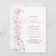 Este convite elegante mostra minha mão pintada de flores silvestres de aquarela em pinças e roxas pastéis.