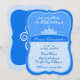Uma coroa azul e branca pontiaguda com decorações em espiral sobre um fundo de um padrão de espiral azul claro. Um modelo convite de aniversário perfeito para um príncipe. Inclui campos personalizados de idade, nome, data, hora, local e rsvp para que você o torne seu.