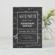 convite de aniversário de matemática de excelente com fundo de fórmulas brancas e equações em um quadro negro como fundo preto. Ilustrada e projetada por Patricia Alvarez.