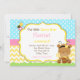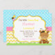 Urso de Mel e Convite de aniversário de Bumble Bee. O fundo é bolinhas azuis e amarelo. O texto pode ser alterado de acordo com suas próprias necessidades. Trabalho de arte por Grafos