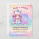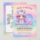 Torne o seu segundo aniversário extra mágico com este convite para o unicórnio do arco-íris! Apresentando uma doce garota de chibi com cabelo cor-de-rosa vestindo um capuz unicórnio, é a maneira perfeita de dar o tom para uma celebração caprichosa. Uma grande cor pastel mostra o aniversário que você está comemorando. Impresso com uma página de coloração de unicórnio bônus no verso para manter pequenos convidados entretidos!