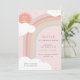 Convites Aniversário do Rainbow, Sun e Clouds Kid Base rosa