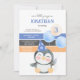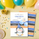Adoráveis convites de aniversário para crianças com pinguim fofo com balão, ideais para a festa de aniversário do seu filho!