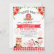 Red Barn Oink Baa Moo Farm baixa Aniversário Convite fazenda, pátio de fazenda ou quintal de nascimento de uma rapariga com um grande celeiro vermelho, vários animais de exploração bonitinhos, balões cor-de-rosa e padrão de xadrez vermelha. Este convite é uma maneira fofa de convidar convidados para uma fazenda vermelha, um campo ou um jardim de galeria com a festa de aniversário da menina.