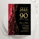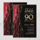 Vermelho, preto e ouro agitam o convite de aniversário 90 surpresa. Elegante design moderno com aquarela agate marble geode background, faux glitter gold e typografia script font. Trendy convida o cartão perfeito para uma comemoração de dia das mulheres na moda. Impressos convites Zazzle ou modelo de impressão digital instantânea para download.