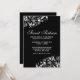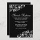O elegante convite de festas preto e doce dezesseis apresentando espiral de prata floresce. Personalize com os detalhes do seu participante. Selecione o botão personalizar para alterar o estilo, a cor e o tamanho da fonte.