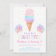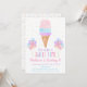 Este convite bonito apresenta um cone de sorvete e balões em cores pastel do arco-íris com faux gold foil confetti.