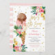 Sorvete tropical Aqui está o Convite de aniversário da Scoop, Convite de aniversário de 5 de Verão, festa de aniversário de sorvete rosa-menina, floral verde
