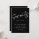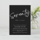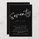 Este é um convite de aniversário de surpresa 70 simples e moderno. É um design de script simples e na moda, escrito à mão, em preto clássico e branco. Entre em contato com o designer para obter informações sobre este design.