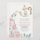 Convite de Aniversário do Tea Party com uma fronteira de flores cor-de-rosa e verde fluindo de um bule de chá branco fofo. Personalize com suas informações. Clique em "clicar para personalizar mais" para alterar o estilo, o tamanho ou a cor da fonte.