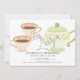 Este convite de festas de chá de aniversário de uma garota fofa apresenta um fundo branco com um bule de chá e um par de xícaras de chá. O verso apresenta um fundo branco com listras cor-de-rosa pinceladas. Personalize-o para as suas necessidades. Você pode encontrar produtos correspondentes na minha loja.