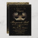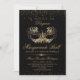 Na moda moderno convite para Mascarada-baile. A caligrafia elegante escrita à mão, combinada com ouro (ouro imitado), uma fonte moderna sobre fundo negro escuro, complementa-se e parece harmoniosa ao mesmo tempo.