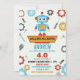 Hospedando uma festa temática de robôs? Este adorável convite de aniversário para robôs é perfeito para o seu pequeno aniversariante ou qualquer criança que ame robôs!.Os seus convidados festas vão adorar este Convite de festas Robô bonito e colorido.Basta adicionar os detalhes do seu evento neste modelo fácil de usar para torná-lo um convite simples.