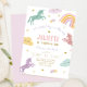 Convite de aniversário arco-íris de unicórnio pastel mágico.