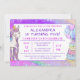 Um convite mágico do Unicórnio com um pouco de brilho e borra! Possui um unicórnio fofo, balões, bolo de aniversário e muitos toques de falso brilho e estrelas cintilantes. Design ©2019 Rosalind Moore, Design de Cherry Lane.