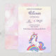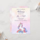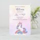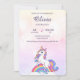 Convide seus convidados para uma celebração mágica com este convite de aniversário de unicórnio de aquarela! Apresentando matizes roxos e cor-de-rosa macio, um arco-íris sonhador, e um monocórnio majestoso, esta carta de dois lados é perfeita para um aniversário com tema de fantasia. Personalize com o nome, a idade e os detalhes do evento do seu filho para torná-lo inesquecível. Ideal para meninas que amam unicórnios e se divertem muito!