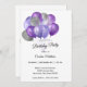 Convite de Aniversário para Balões de Prata Roxo Personalizáveis.
