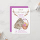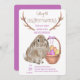Um convite para páscoas bonitinho para o aniversário de uma menina ou caçada de ovos de Páscoa. O título é enquadrado com traficantes e diz "chamando todos os caçadores de eggspert .. agarre a cesta e junte-se a nós para [a sua ocasião]" Toda a redação é editável para você personalizar o máximo que quiser. A design apresenta um belo coelho de Páscoa com uma cesta de ovos de Páscoa. O convite tem uma paleta colorida de castanho e cor-de-rosa, que também pode ser editada (clique em "personalizar mais")