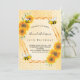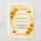 Elegante, divertido, convite de festas de verão de 50 anos (ou qualquer idade). Fundo amarelo, branco com um padrão de mel. Com uma falsa estrutura geométrica dourada. Decorado com girassóis amarelos e laranja e abelhas-desabrochadas felizes. O nome é escrito com um moderno estilo escrito à mão. Letras negras. Perfeito para uma festa de chá de verão em um jardim, quintal. Traseira: padrão amarelo de mel branco e uma abelha feliz.