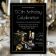 Celebre em estilo com o nosso Convite de aniversário de qualquer número! Apresentando elegantes presentes em preto e ouro, champanhe e calçados de roupas em um sofisticado fundo preto e ouro. Personalize com sua idade e detalhes do evento. Perfeito para uma comemoração inesquecível e em escala alta.