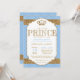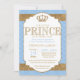 Dourado brilho, azul de bebê real. Bem-vindo a um pequeno príncipe ou comemore o seu aniversário com este convite real ao querido.